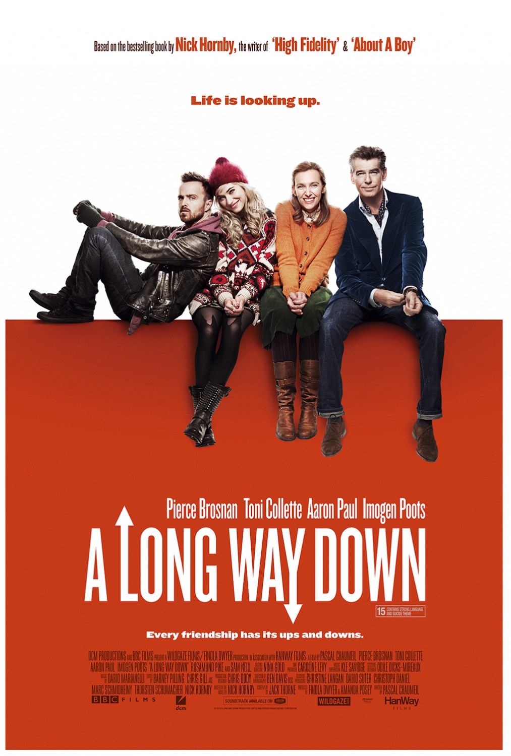 A Long Way Down On New Year’s Eve four people from very different walks of life find themselves together on the roof of Toppers Building, a notorious suicide spot. There’s; Martin (Pierce Brosnan), famous but toppled by a sex scandal; Maureen (Toni Colette), a mother with a severely disabled son; Jess (Imogen Poots), heartbroken after a breakup; and JJ (Aaron Paul), an American musician with brain cancer. After much humorous discussion, they come to the decision that they will delay their impending deaths until Valentine’s Day, offering each other emotional support in an attempt to make suicide unnecessary. When the…